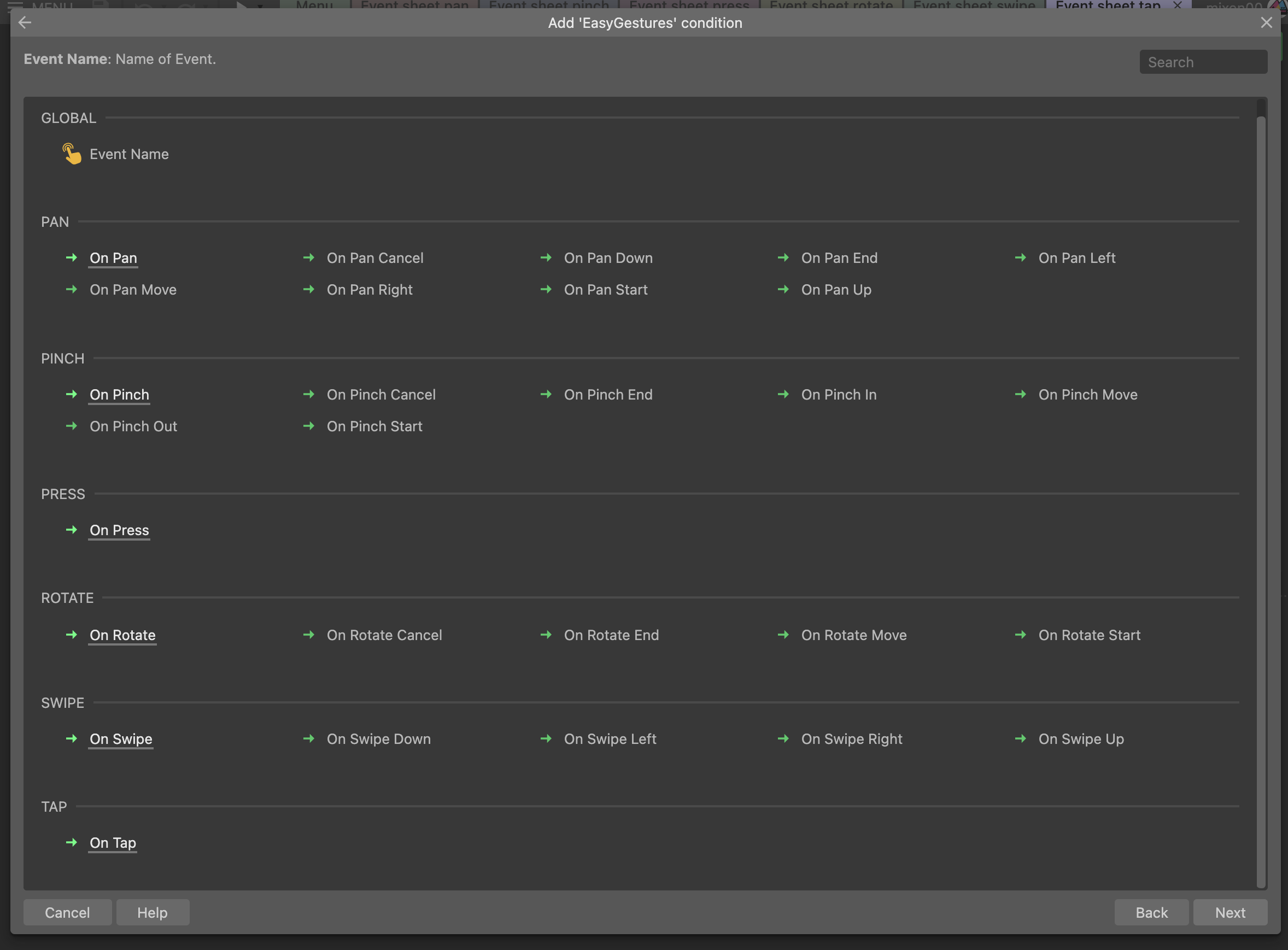 Easy Gestures is a plugin for Construct 3 that allows you to add gesture support to your mobile games.